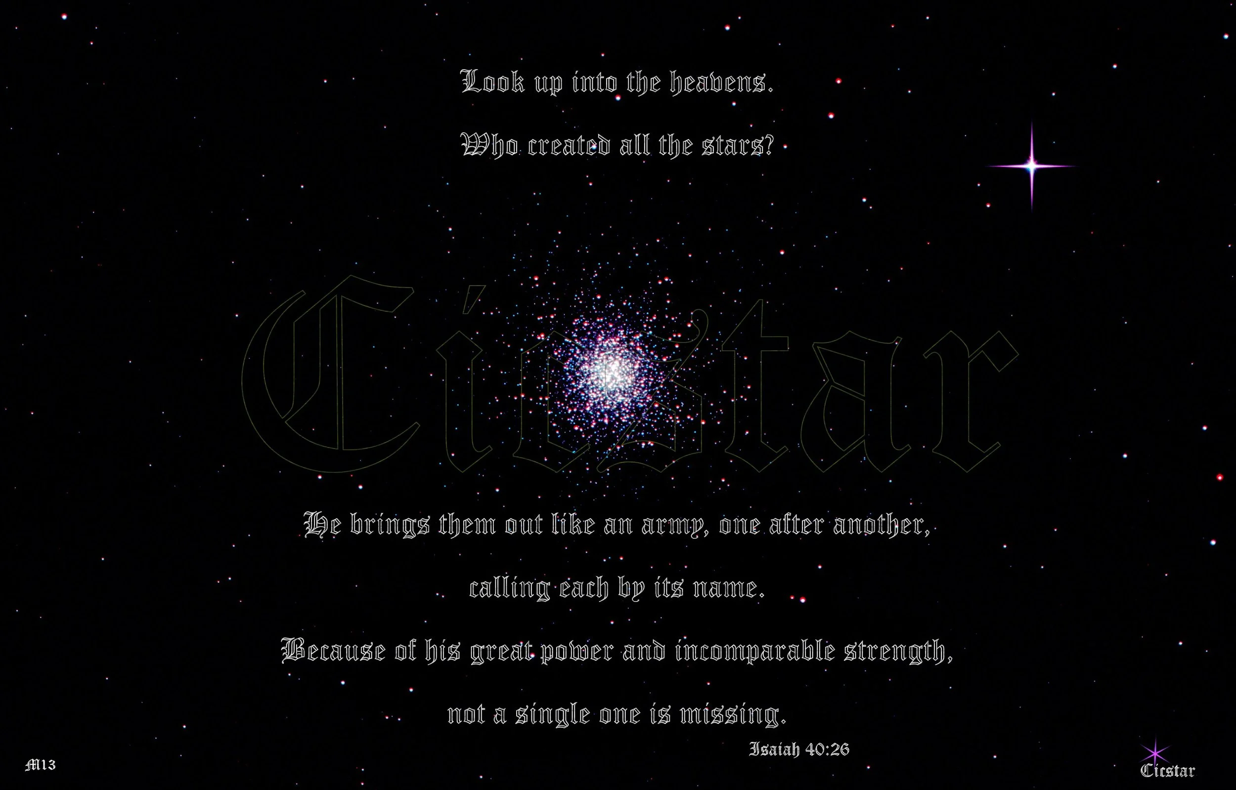 M13 Great Hercules Globular Cluster with Isaiah 40:26 (NIV)